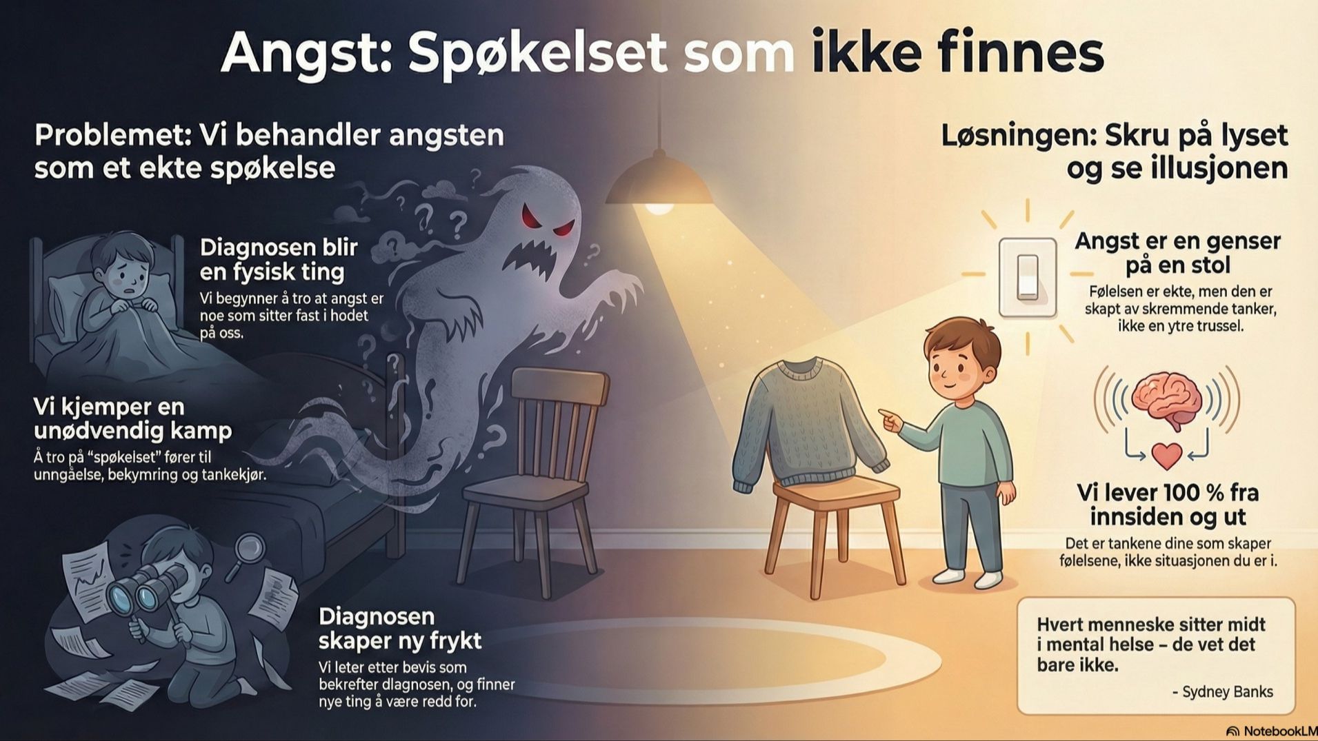 Hva om diagnosen angst fungerer på akkurat samme måte? Hva om angst bare er et spøkelse du tror på, fordi det er mørkt i rommet akkurat nå?