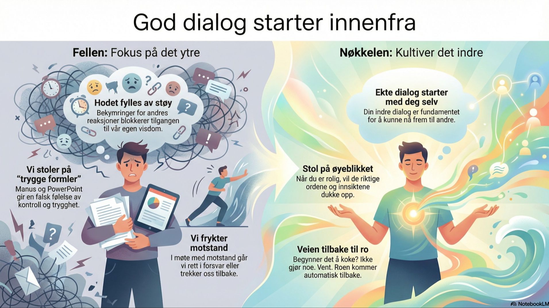 De aller fleste vet intellektuelt hva som skal til. Kanskje har du vært på kurs, eller lest teorien. Likevel er det ofte noe som stopper oss fra å oppnå den gode samtalen i praksis.