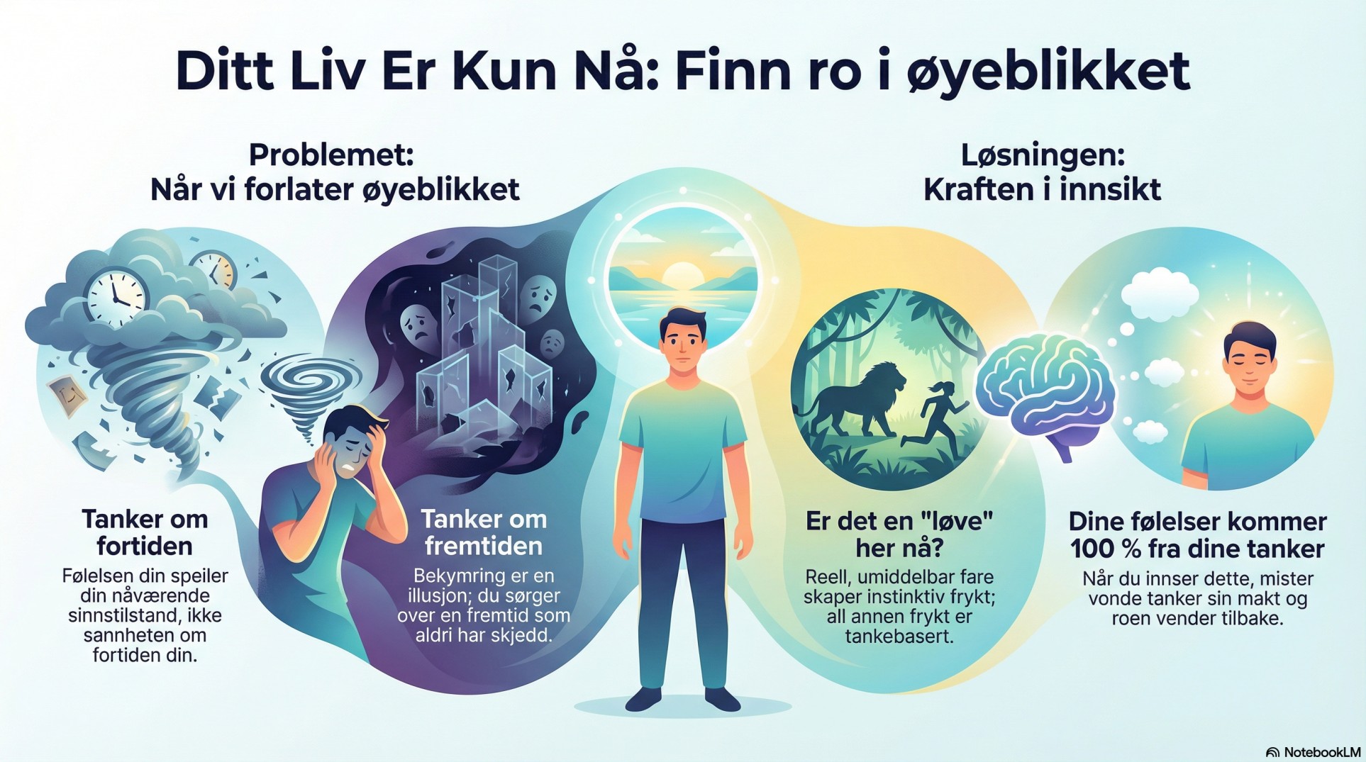 Det er ikke noe galt i å tenke på fortid eller fremtid, men vit dette: De eksisterer kun når du tenker på dem i et øyeblikk. Du har aldri opplevd "fortiden" – du opplevde et øyeblikk da, og nå opplever du tankene dine nå.