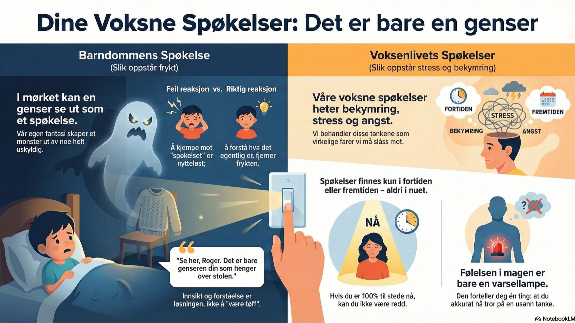 Våre voksne spøkelser heter bekymring, stress, usikkerhet og angst for fremtiden.