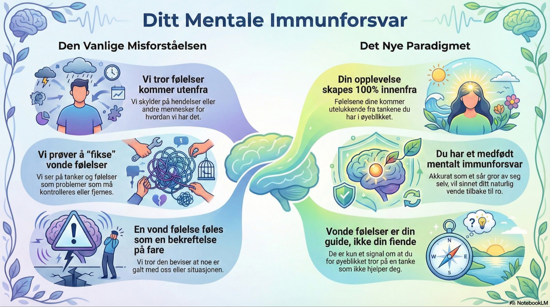 I dette webinaret viser jeg deg hvordan din medfødte ro alltid ligger rett under overflaten. Du lærer hvorfor vonde følelser bare er et navigasjonssystem som varsler om egne tanker, og hvordan systemet ditt automatisk healer seg selv når du slutter å "fikse" det.